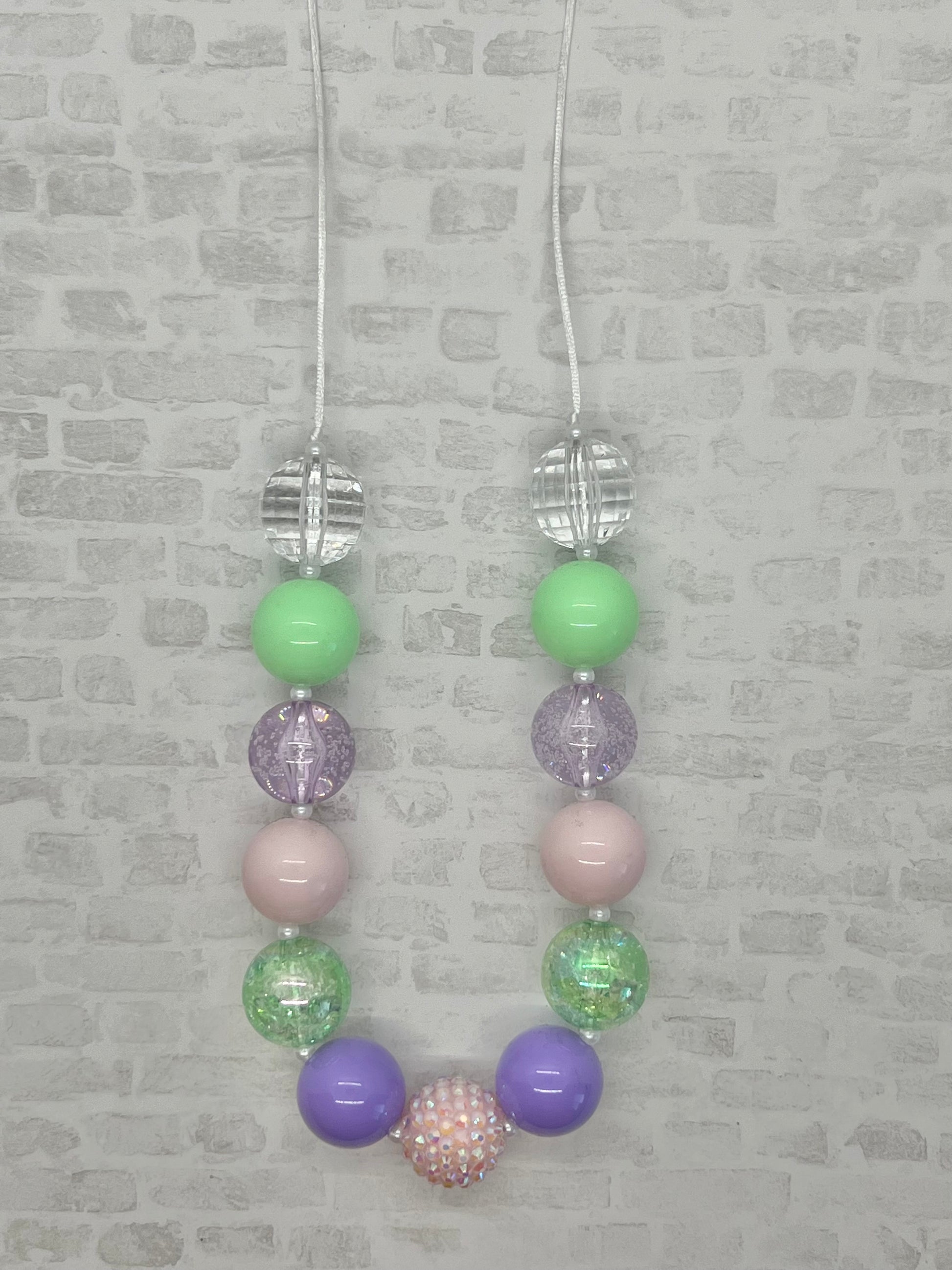 All Bubblegum Necklaces are approximately 22inch long total. Perfect length for age 6 months and up!